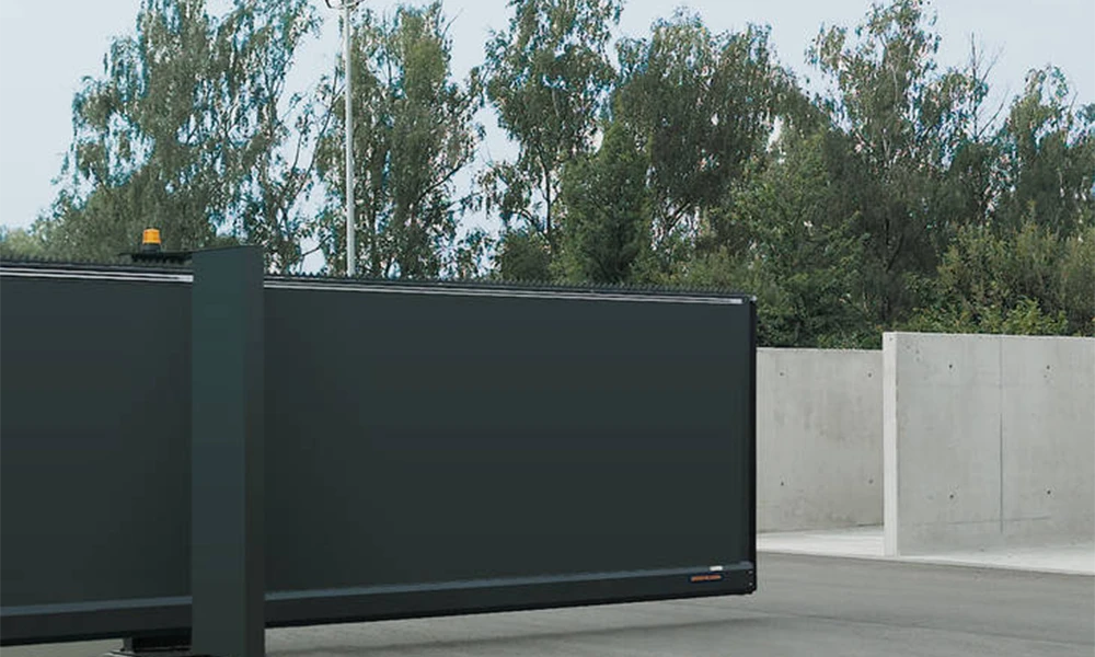 Las cancelas correderas de Hörmann están fabricadas con perfiles de acero estables y se suministran como elemento completo para anchos de apertura de hasta 16 metros (y hasta 32 metros en configuración de marcha opuesta).